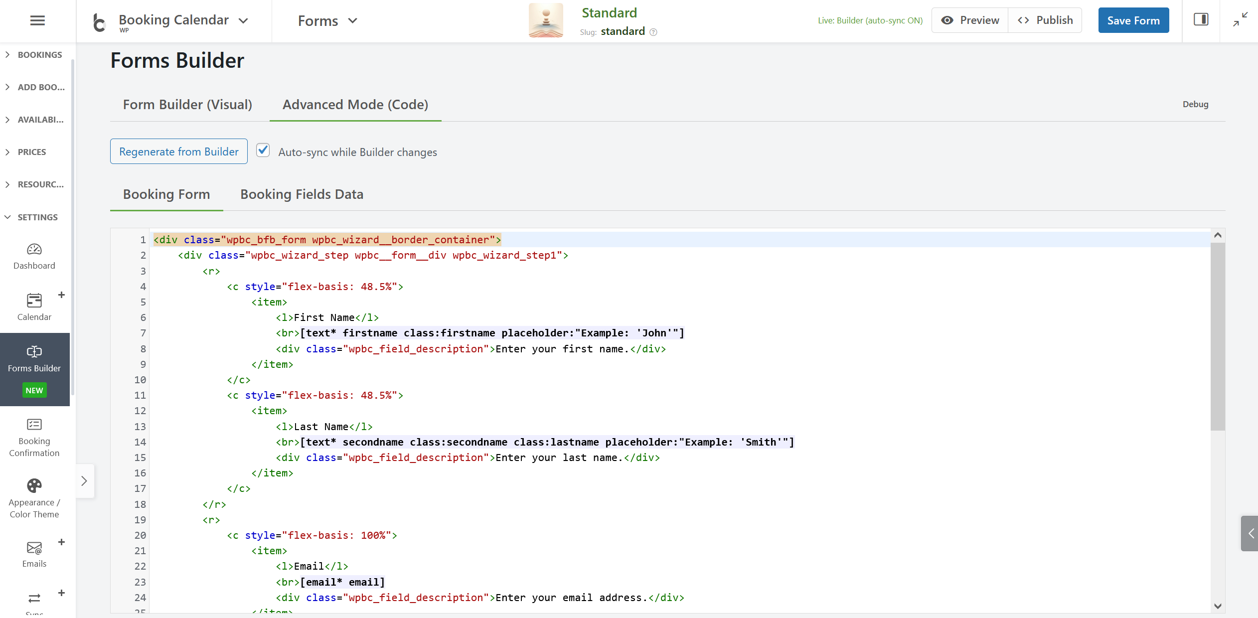 - • To return to the previous legacy booking form configuration, go to Form Builder > Settings in the right sidebar and disable the "Drag & Drop Form Builder" option.
