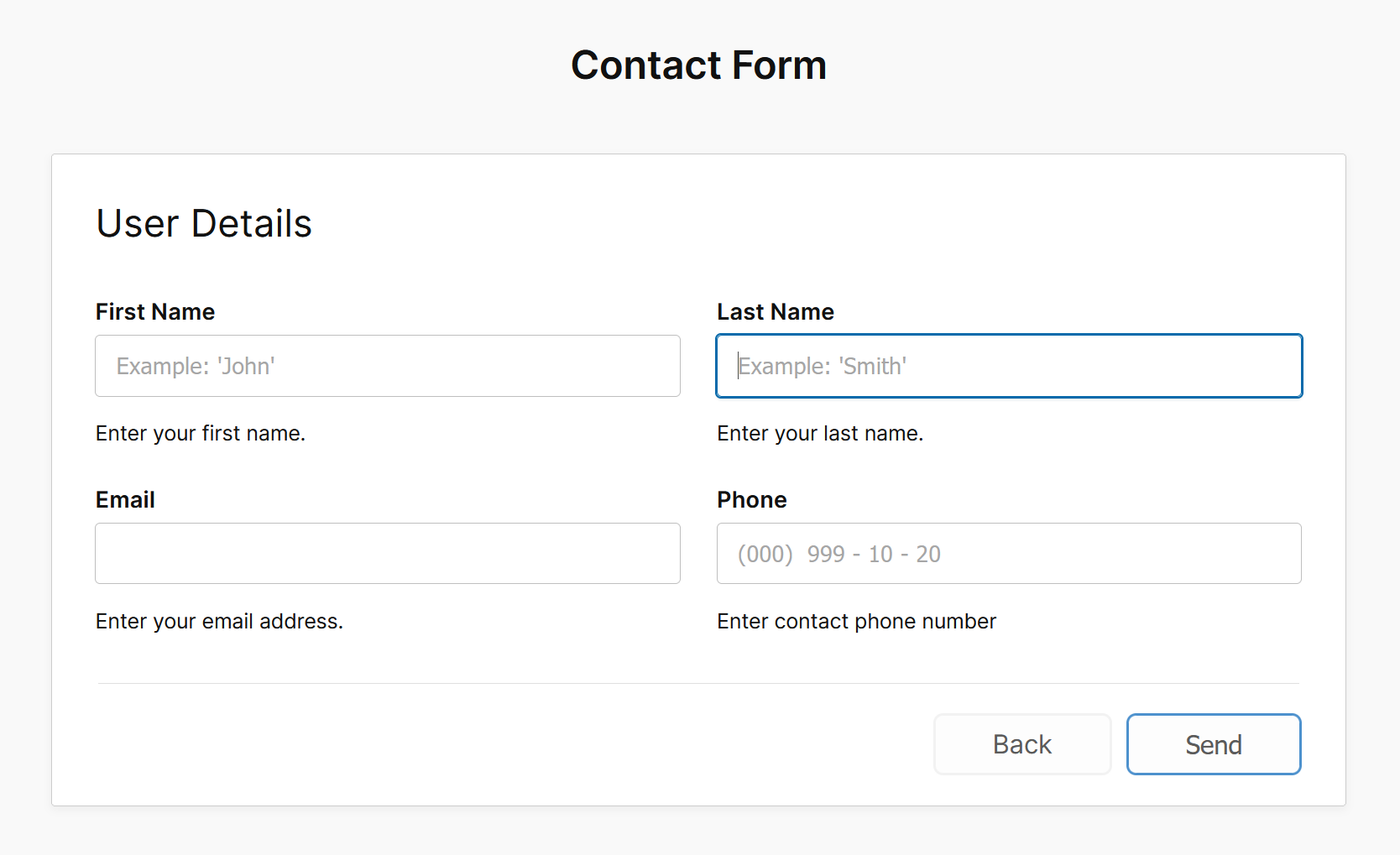 - • Rows and columns layout for clean and structured form designs.