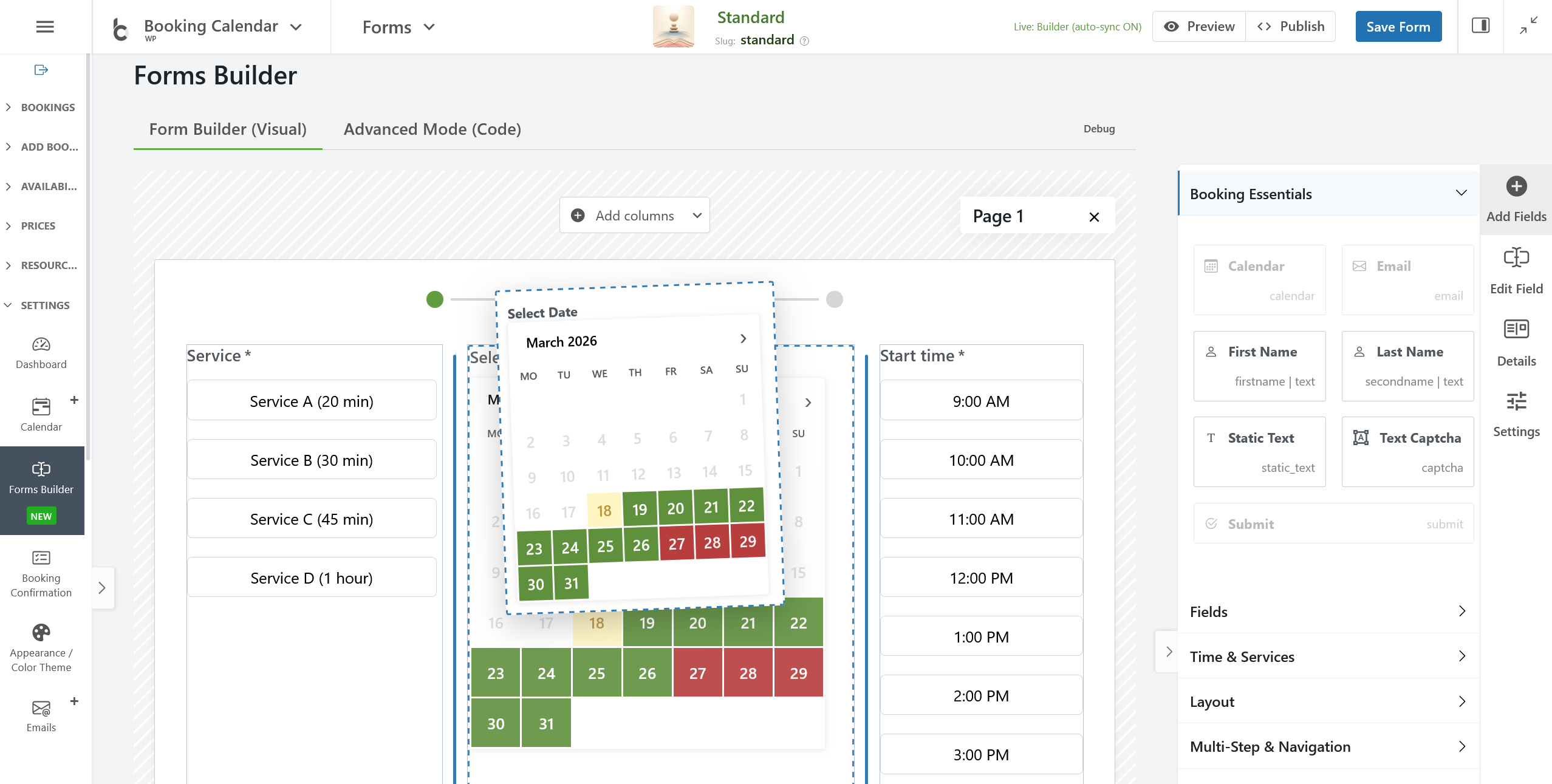 - • Multi-page forms for creating step-by-step wizard-style booking forms.